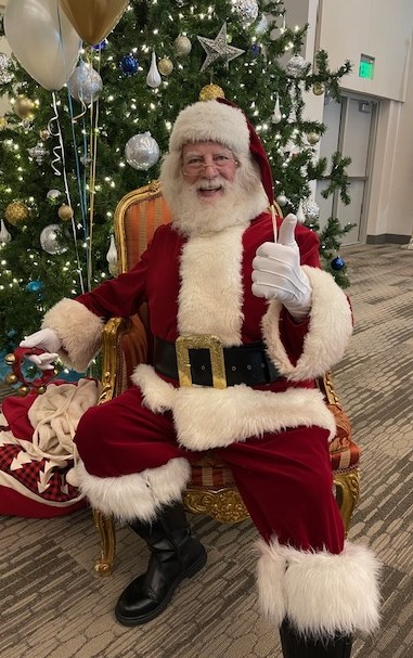 I am a VERY ACTIVE Santa. I dance, read stories, lead songs and generally GET involved. Condominium Christmas Parties, Adult Employee Christmas parties to City Tree Lighting events, I have done one to one (people and pets), on stage to large picnic groups and local Fox Affiliate 15 minute television presentation.